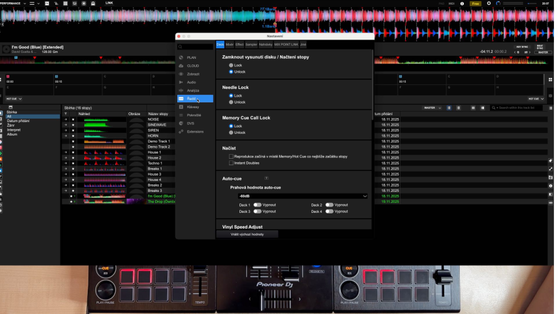 🎛️ Výuka probíha na nejdostupnější a velmi oblíbené DJ konzoli Pioneer DJ DDJ 400 (FLX 4), ovládání je však velmi podobné i u profesionálnějších modelů